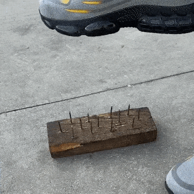 La suola delle scarpe PowerX Tank è resistente alla penetrazione, così da proteggerti nel caso dovessi calpestare qualcosa di appuntito.